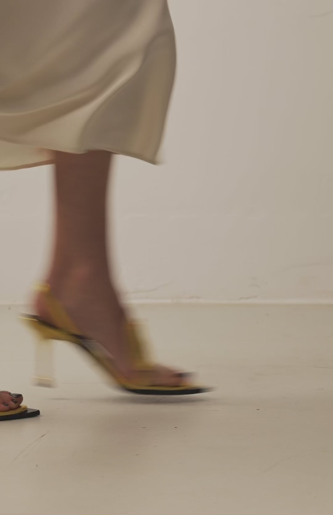 Podobnie jak biegnący wzdłuż stopy pasek, który dodatkowo zapobiega zsuwaniu się butów. Smukły obcas został zakończony złotą kulką Vanda Novak. Stanowi ona nie tylko element ozdobny, ale również zwiększa stabilność i poprawia rozłożenie nacisku. Wkładka wykonana z pianki memory zapewnia amortyzację i komfort noszenia przez cały dzień.
