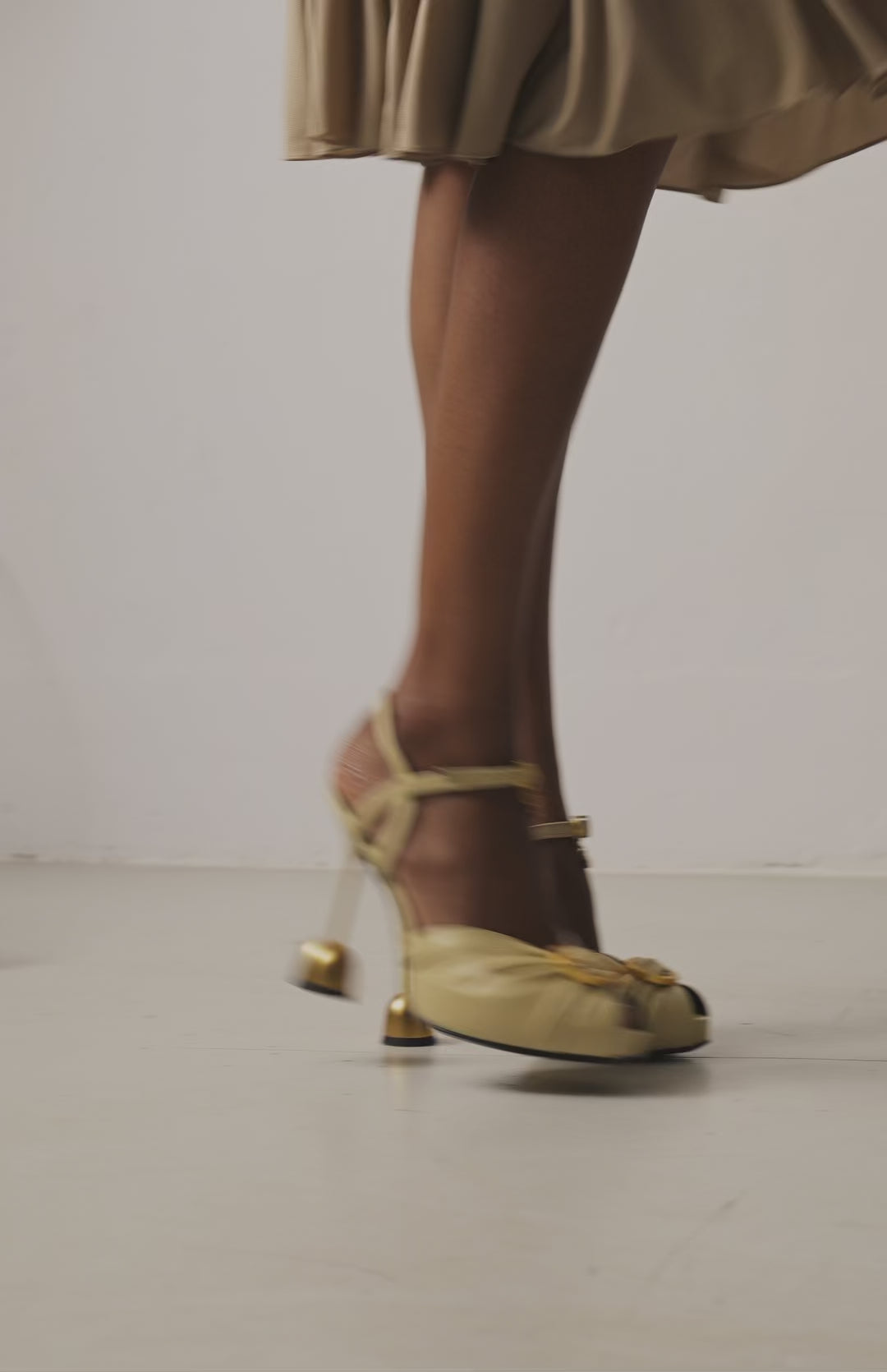 Sandały z naturalnej skóry na obcasie w odcieniu kości słoniowej. Zapięcie wokół kostki zapewnia idealne trzymanie na stopie, a obcas zakończony złotą kulką Vanda Novak dodaje butom charakteru i stabilizuje krok.